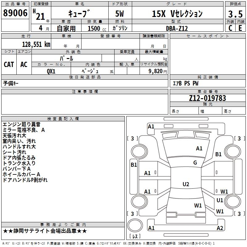 NISSAN CUBE - лот 89006