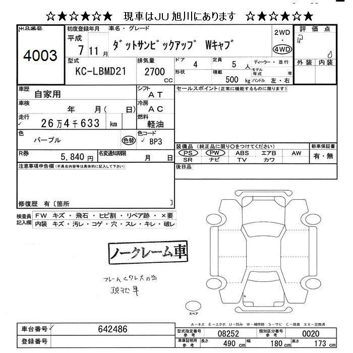 NISSAN DATSUN 4WD PICKUP W CAB - лот 4003