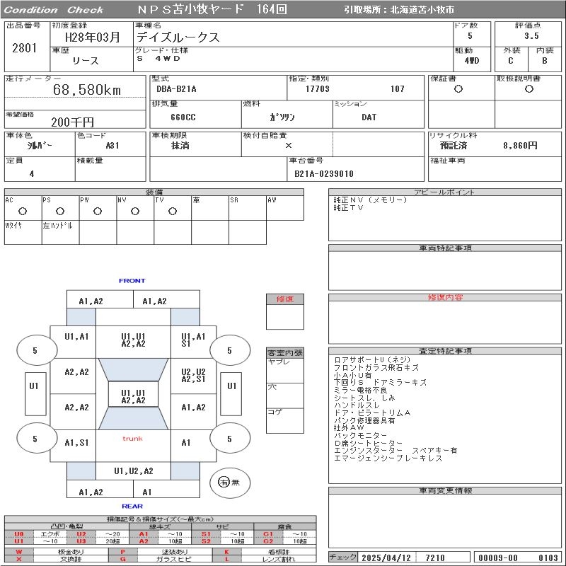 NISSAN DAYZ ROOX S/4WD - лот 2801