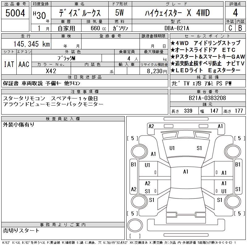 NISSAN DAYZ ROOX HIGHWAY STAR X 4WD - лот 5004
