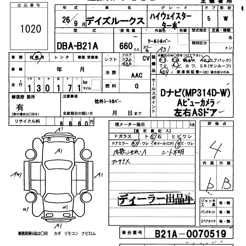 NISSAN DAYZ ROOX HIGHWAY STAR TURBO - лот 1020