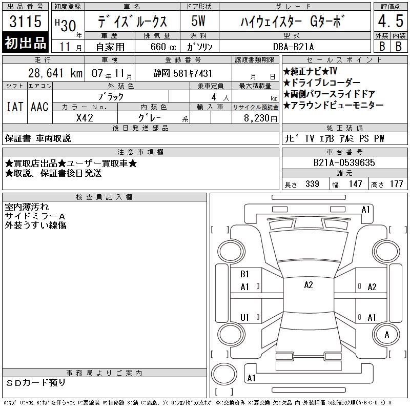 NISSAN DAYZ ROOX HIGHWAY STAR G TURBO - лот 3115