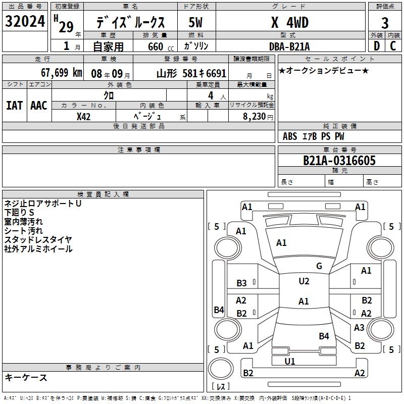 NISSAN DAYZ ROOX X 4WD - лот 32024