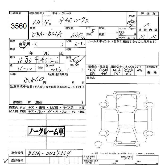 NISSAN DAYZ ROOX 4WD - лот 3560
