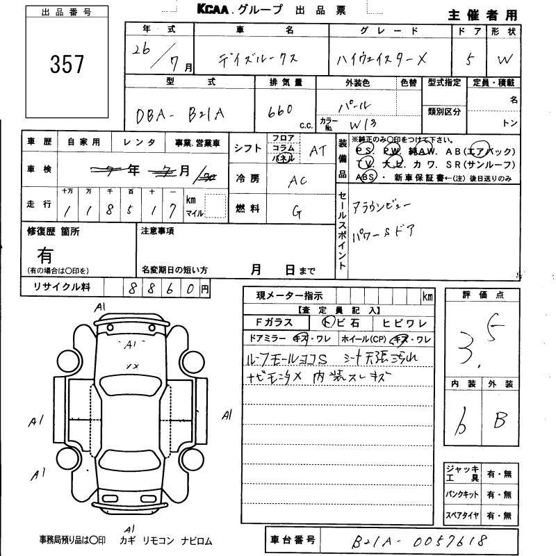 NISSAN DAYZ ROOX HIGHWAY STAR X - лот 357