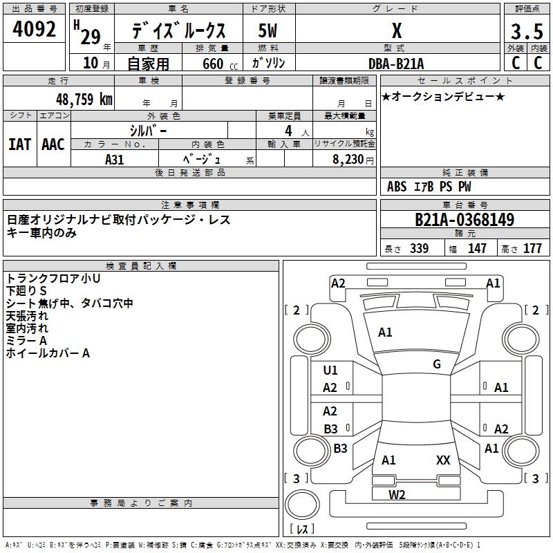 NISSAN DAYZ ROOX X - лот 4092