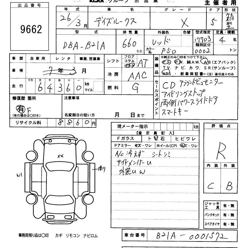NISSAN DAYZ ROOX X - лот 9662