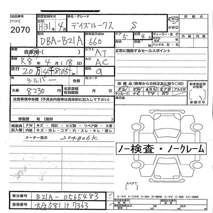 NISSAN DAYZ ROOX S - лот 2070