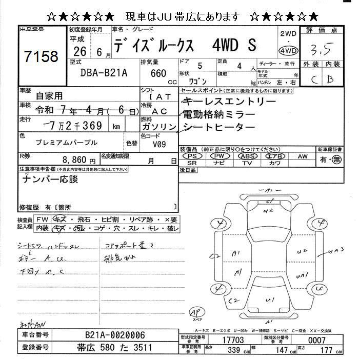 Все аукционы NISSAN DAYZ ROOX