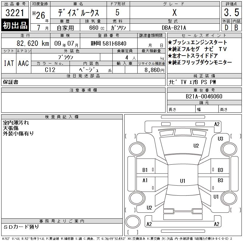 NISSAN DAYZ ROOX X - лот 3221
