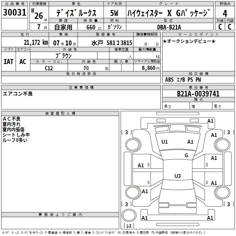 NISSAN DAYZ ROOX - лот 30031
