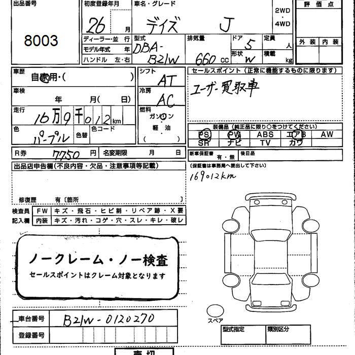 NISSAN DAYZ - лот 8003