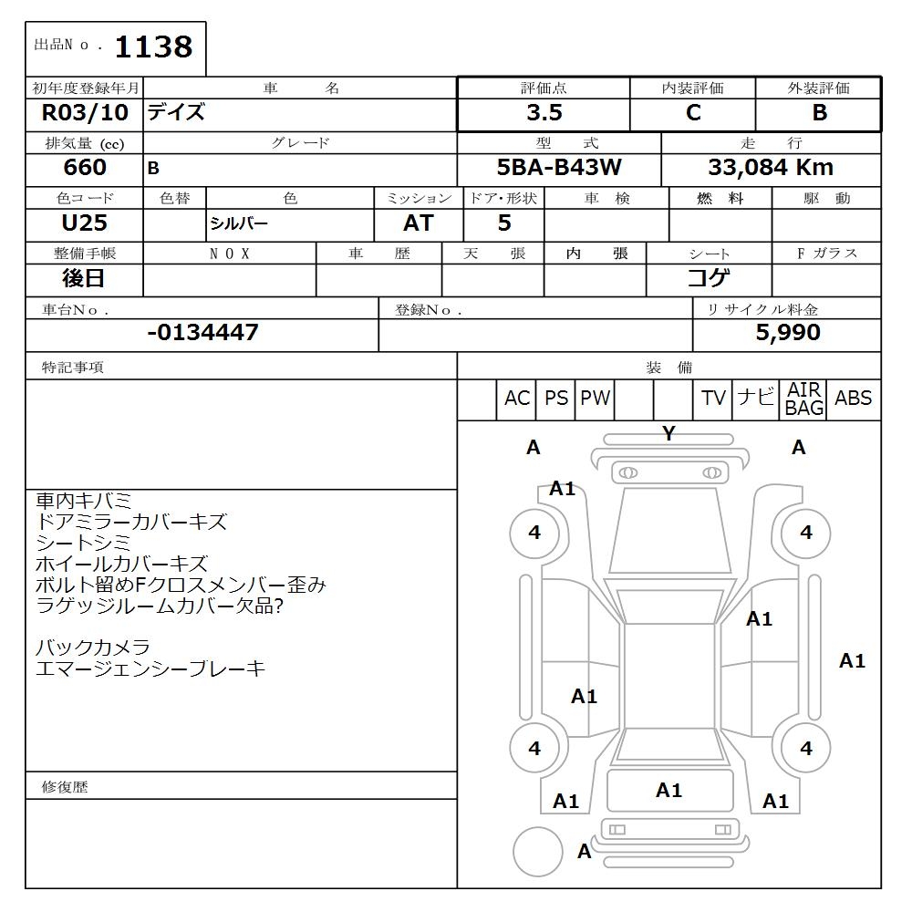 NISSAN DAYZ - лот 1138