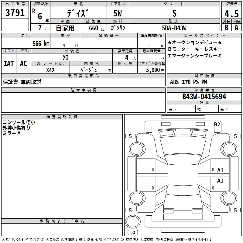 NISSAN DAYZ S - лот 3791