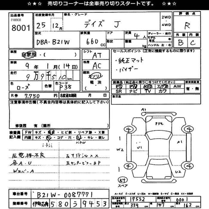 Все аукционы NISSAN DAYZ