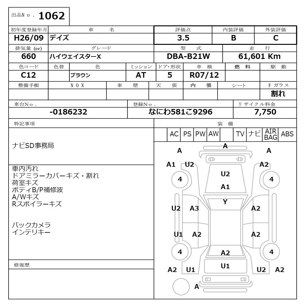 NISSAN DAYZ - лот 1062