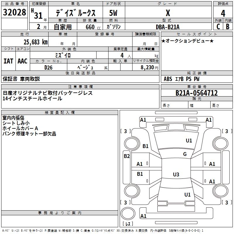NISSAN DAYZ ROOX - лот 32028