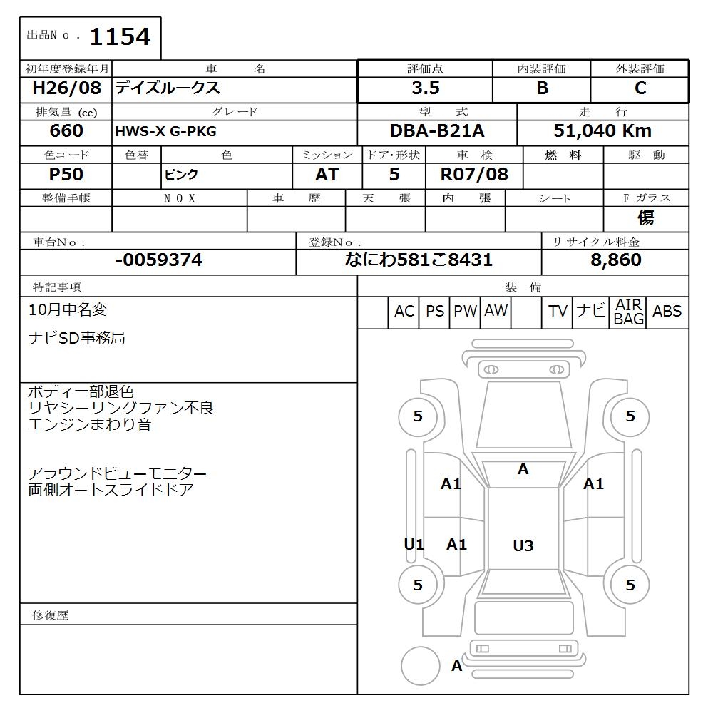 Все аукционы NISSAN DAYZ ROOX