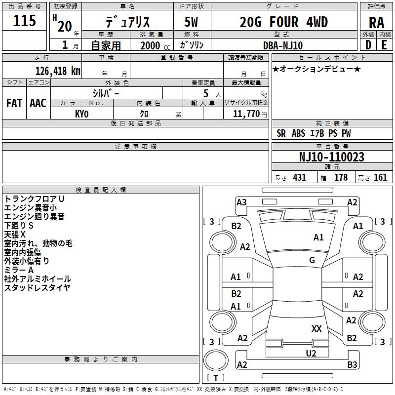 NISSAN DUALIS 20G FOUR 4WD - лот 115