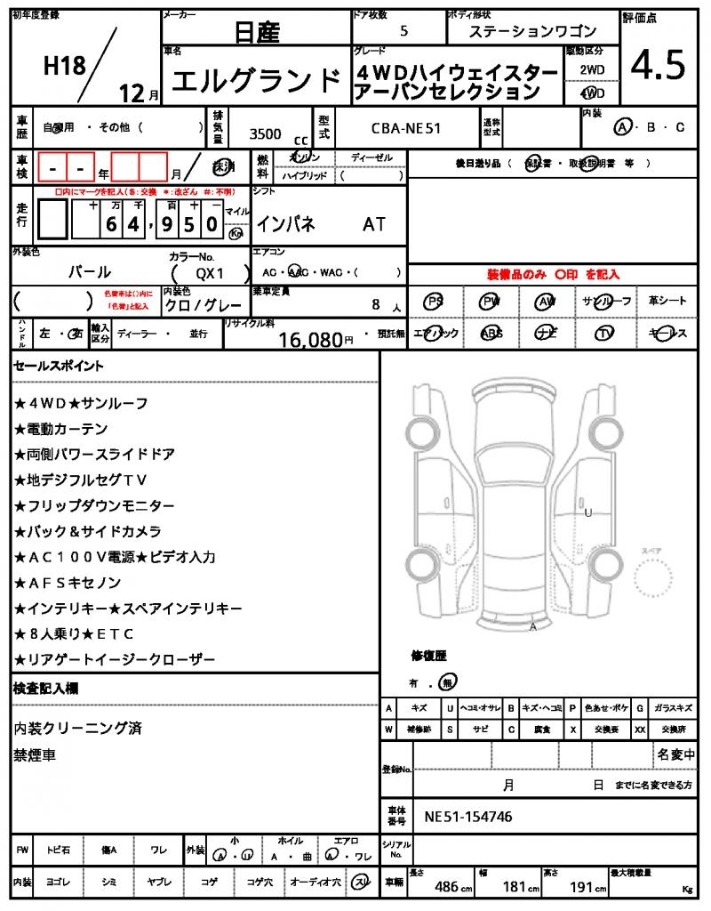 NISSAN ELGRAND - лот 6594