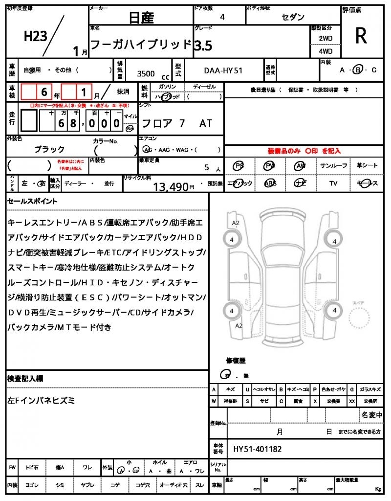 Все аукционы NISSAN FUGA HYBRID