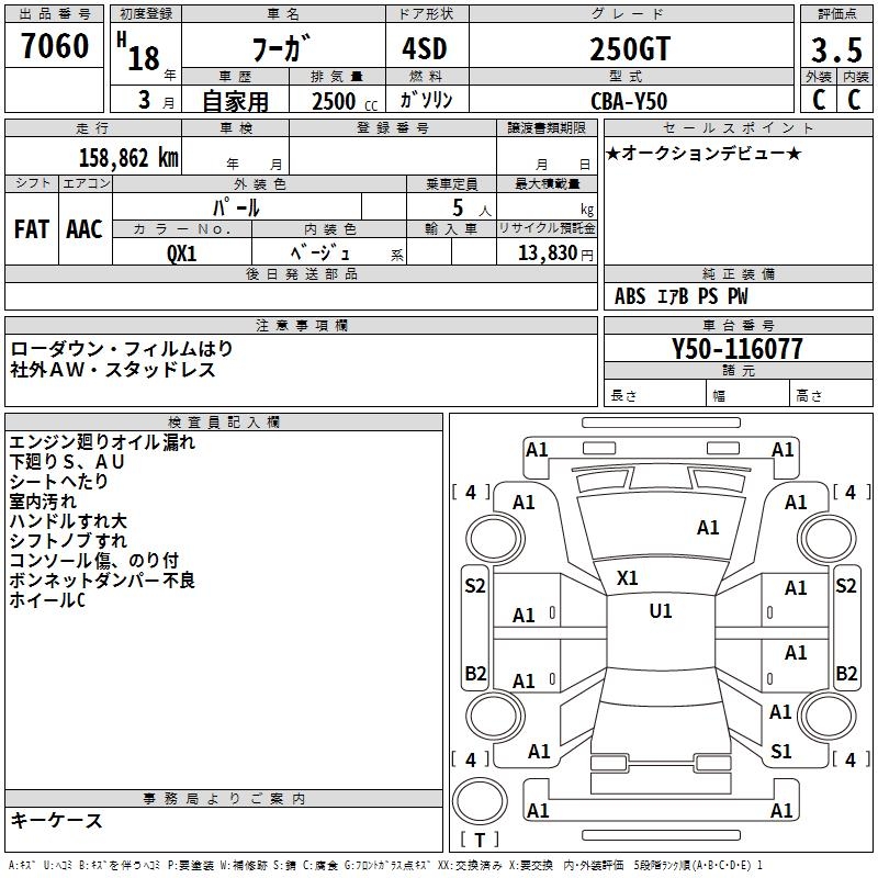 NISSAN FUGA - лот 7060