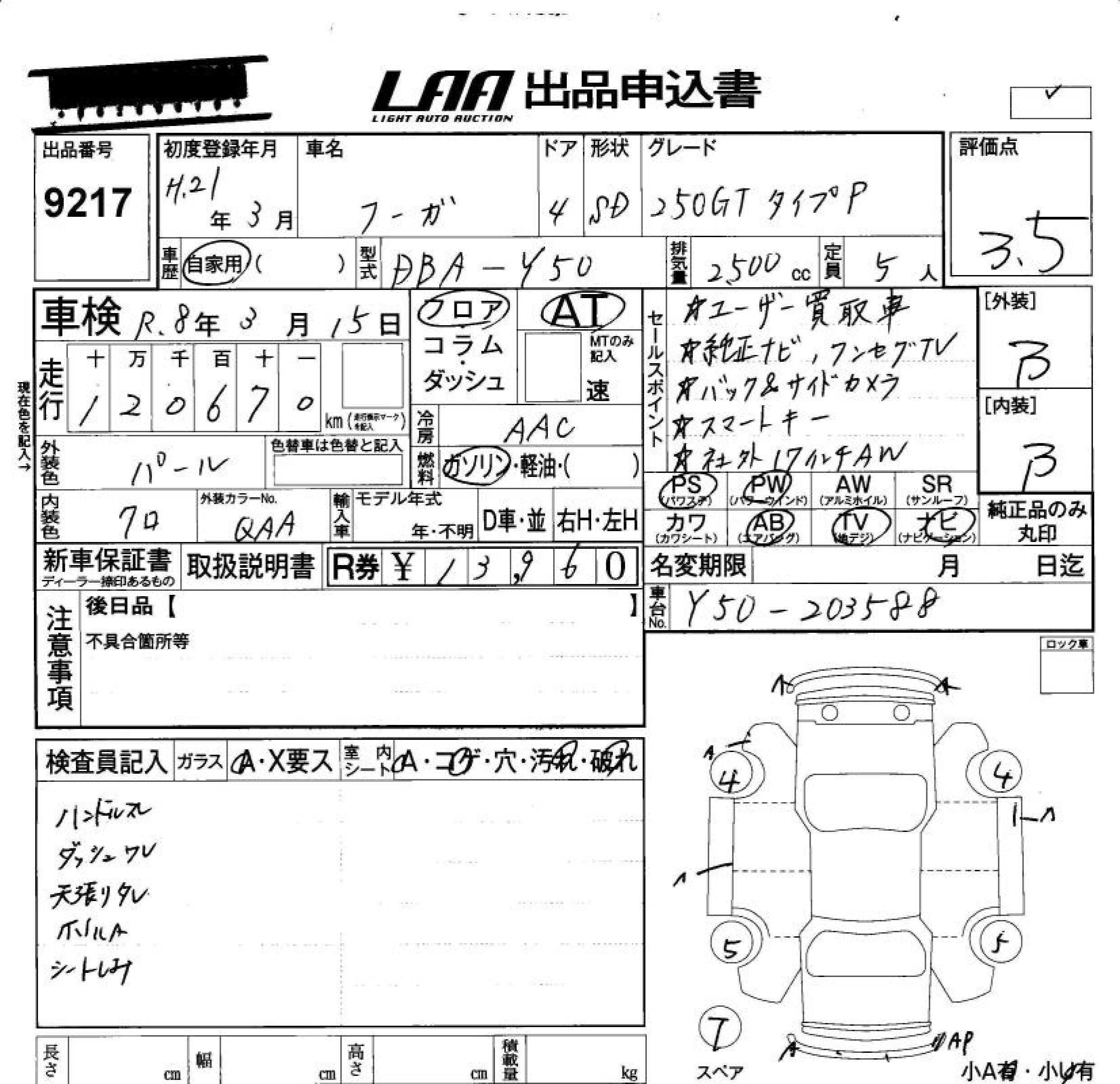 NISSAN FUGA - лот 9217