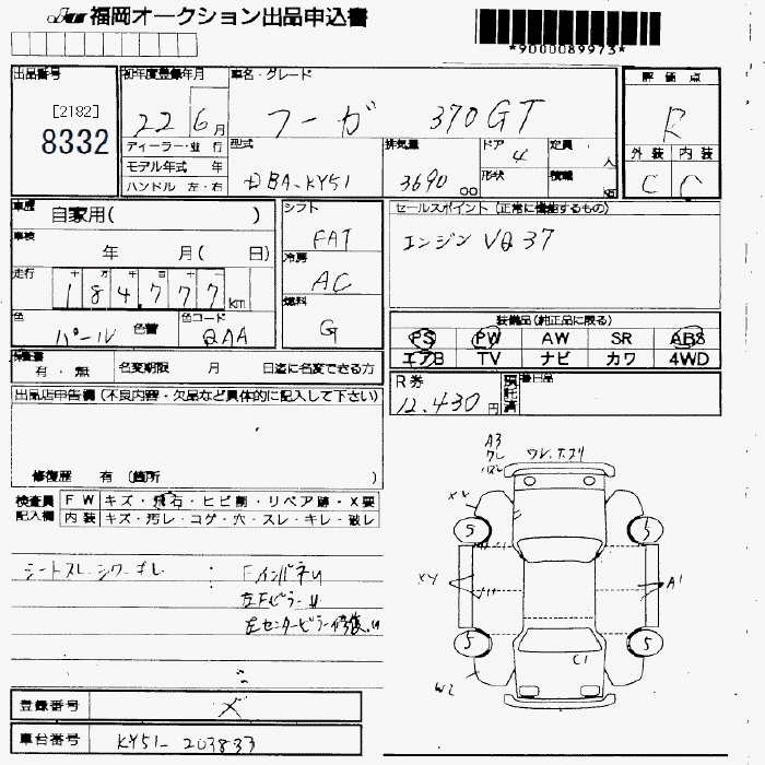 NISSAN FUGA - лот 8332