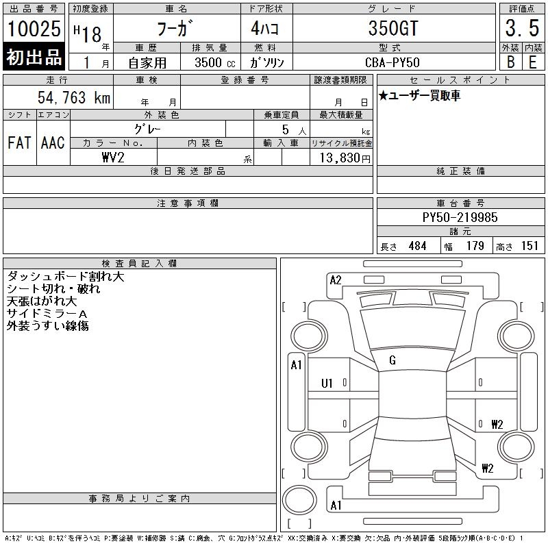 NISSAN FUGA 350GT - лот 10025