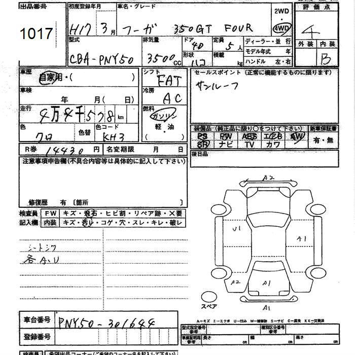 NISSAN FUGA 4WD 350GT FOUR - лот 1017