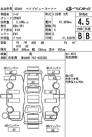 NISSAN FUGA 250GT - лот 50044