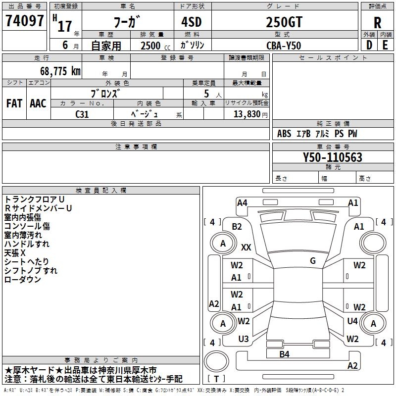 NISSAN FUGA 250GT - лот 74097