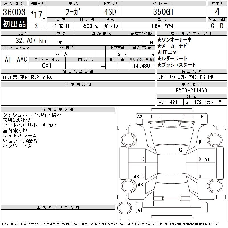 NISSAN FUGA 350GT - лот 36003