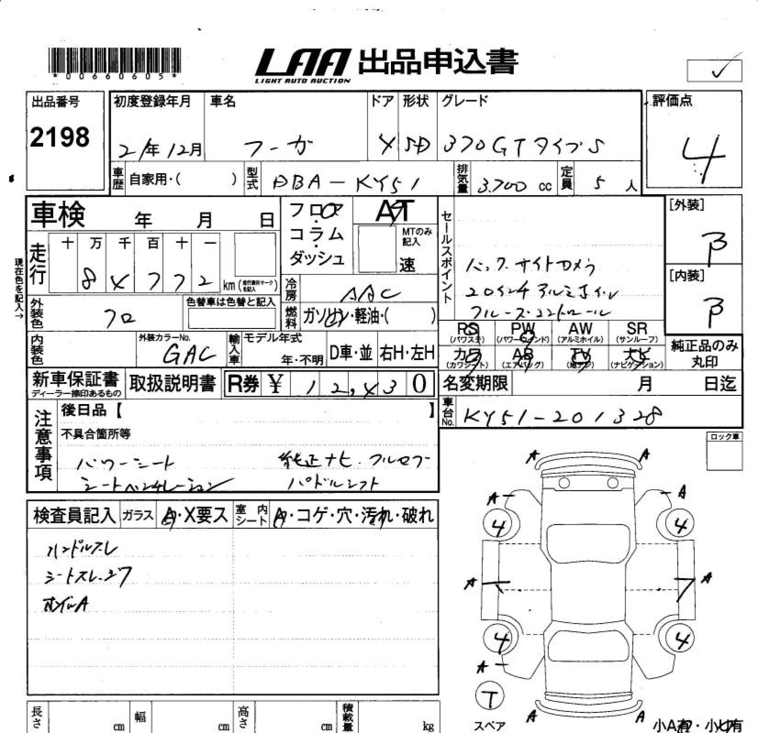 NISSAN FUGA 370GT TYPE S - лот 2198