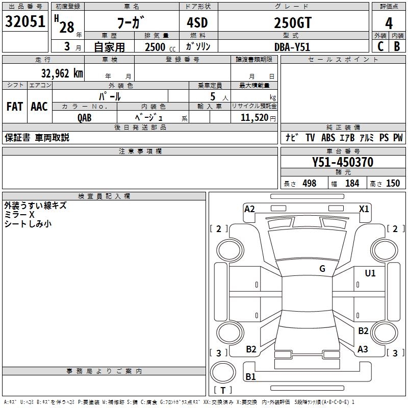 NISSAN FUGA 250GT - лот 32051