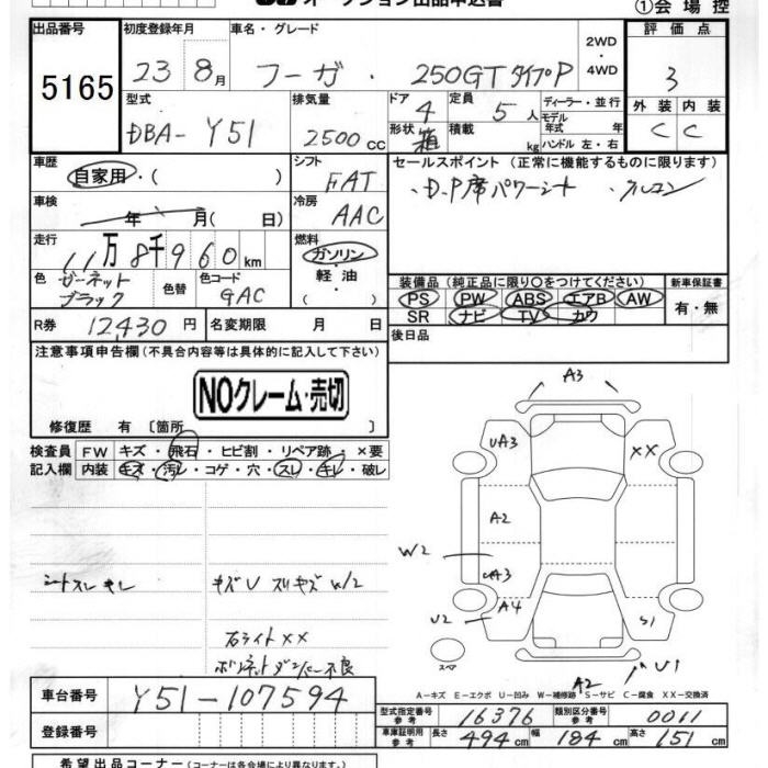 NISSAN FUGA 250GT TYPE P - лот 5165