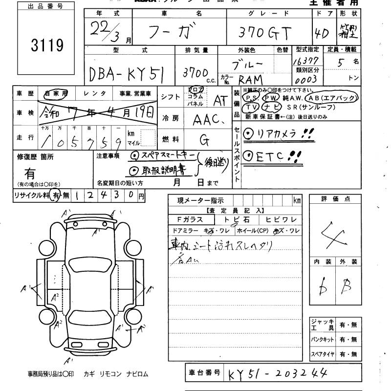 NISSAN FUGA 370GT - лот 3119