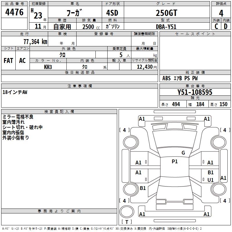 NISSAN FUGA 250GT - лот 4476