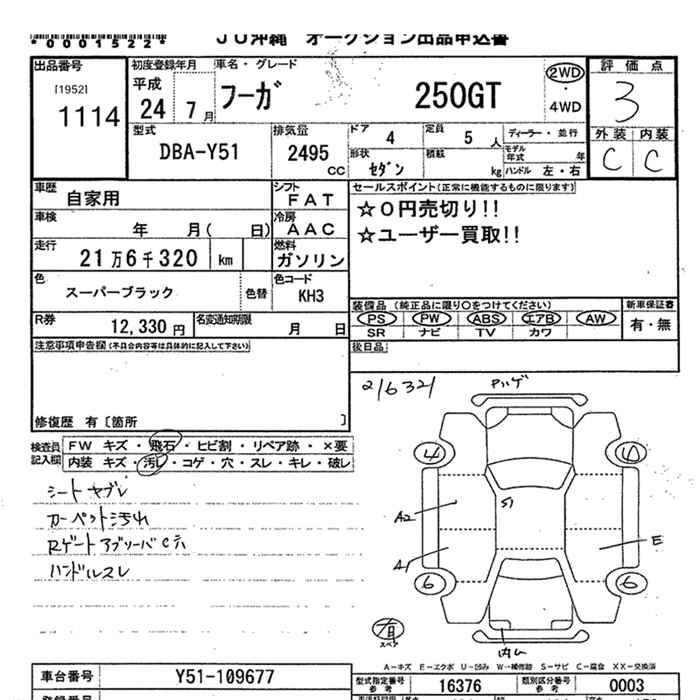 NISSAN FUGA 250GT - лот 1114
