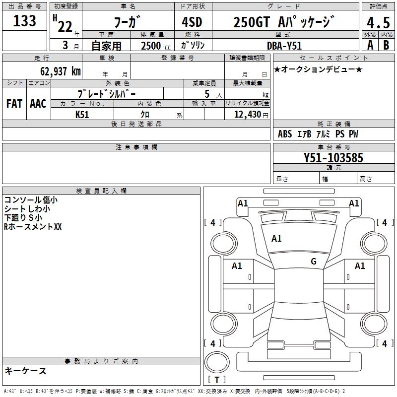 NISSAN FUGA 250GT A PACKAGE - лот 133