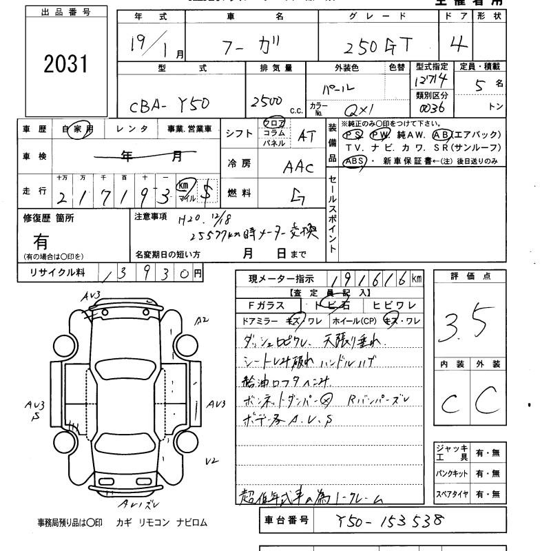 NISSAN FUGA 250GT - лот 2031