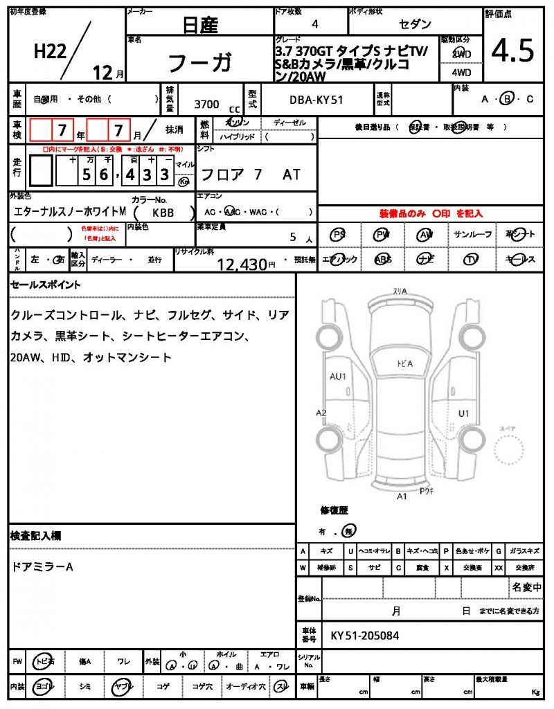 NISSAN FUGA - лот 60378
