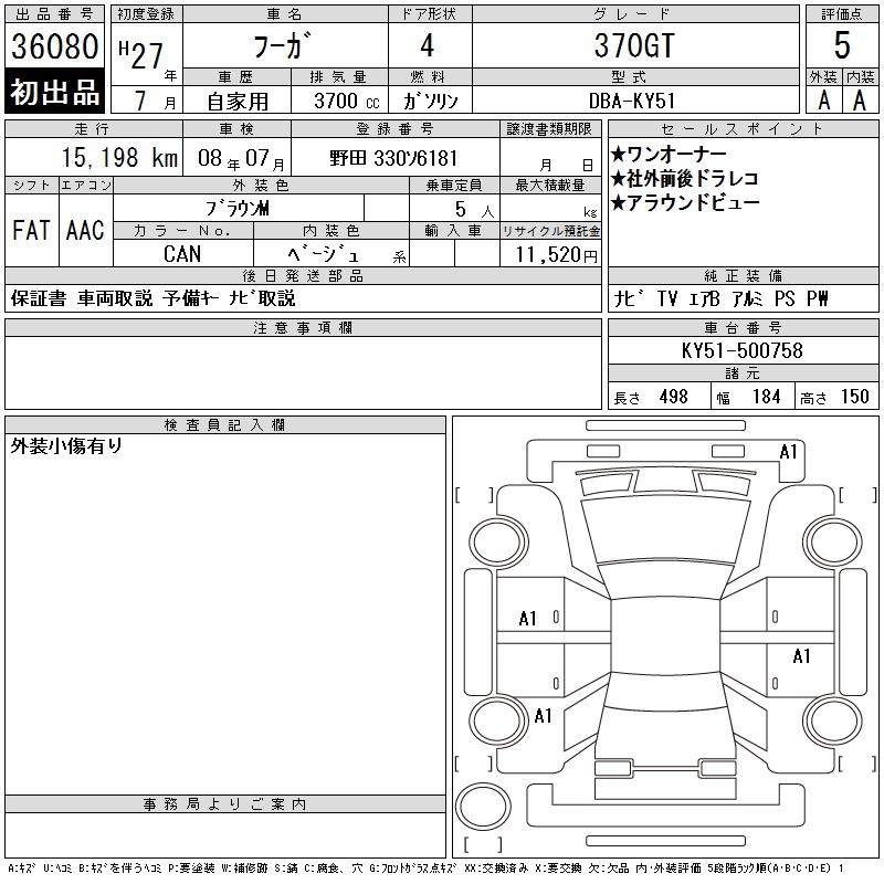 NISSAN FUGA 370GT - лот 36080