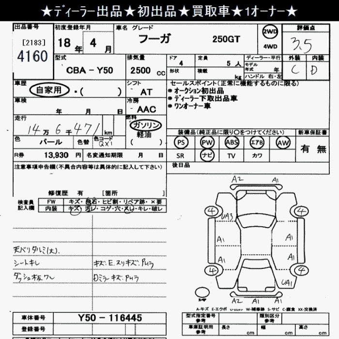NISSAN FUGA 250GT - лот 4160