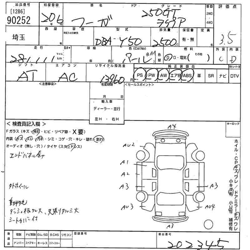 NISSAN FUGA 250GT TYPE P - лот 90252