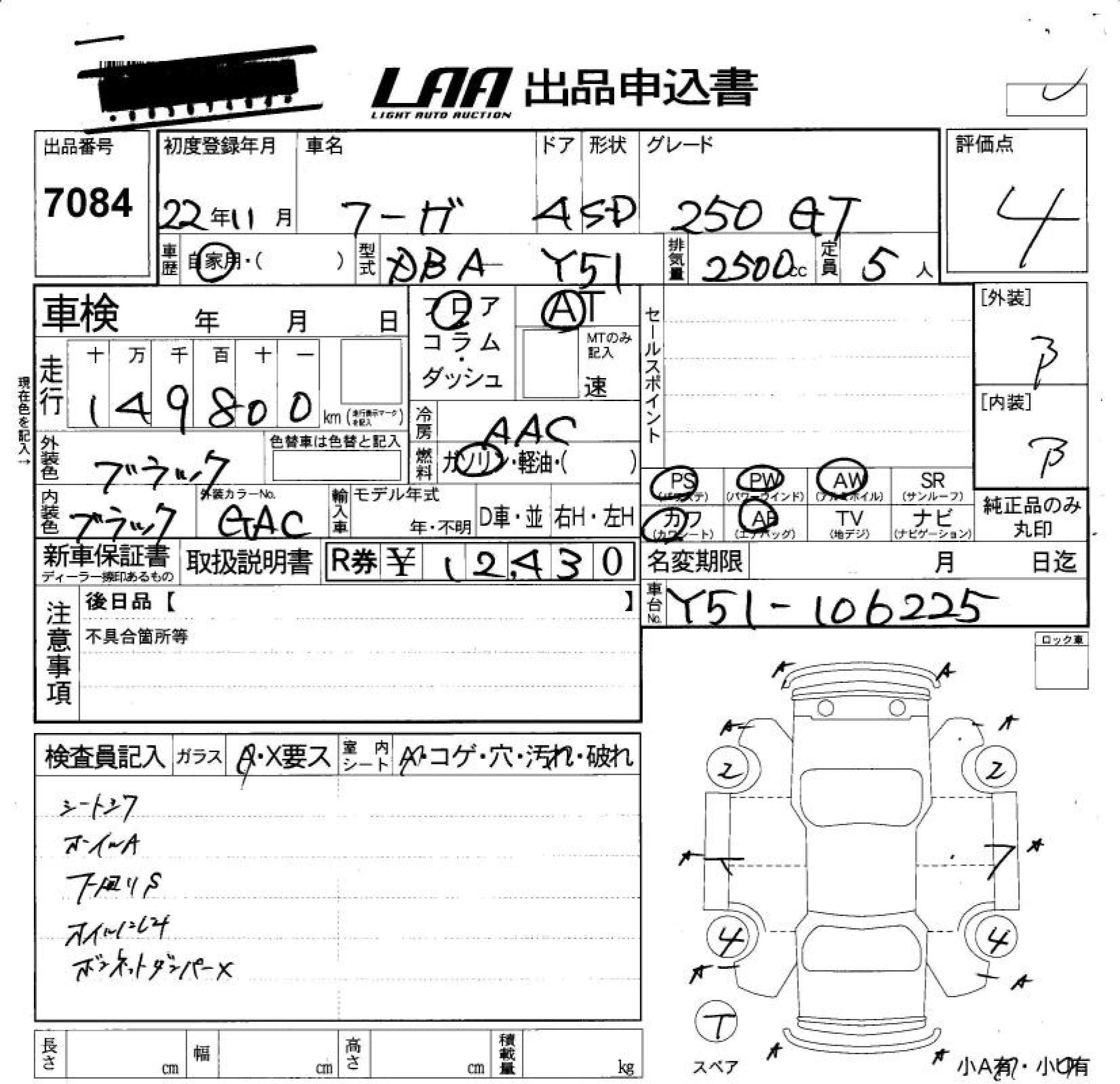 NISSAN FUGA 250GT - лот 7084