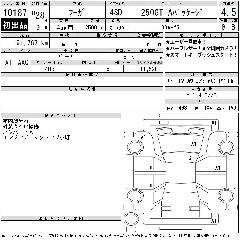 NISSAN FUGA 250GT A PACKAGE - лот 10187