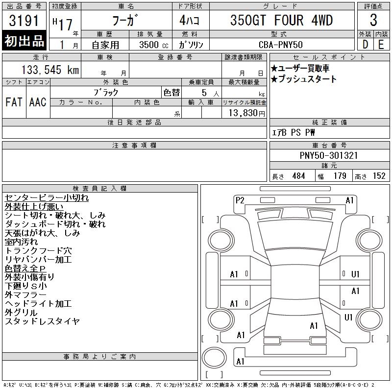 NISSAN FUGA 350GT FOUR 4WD - лот 3191