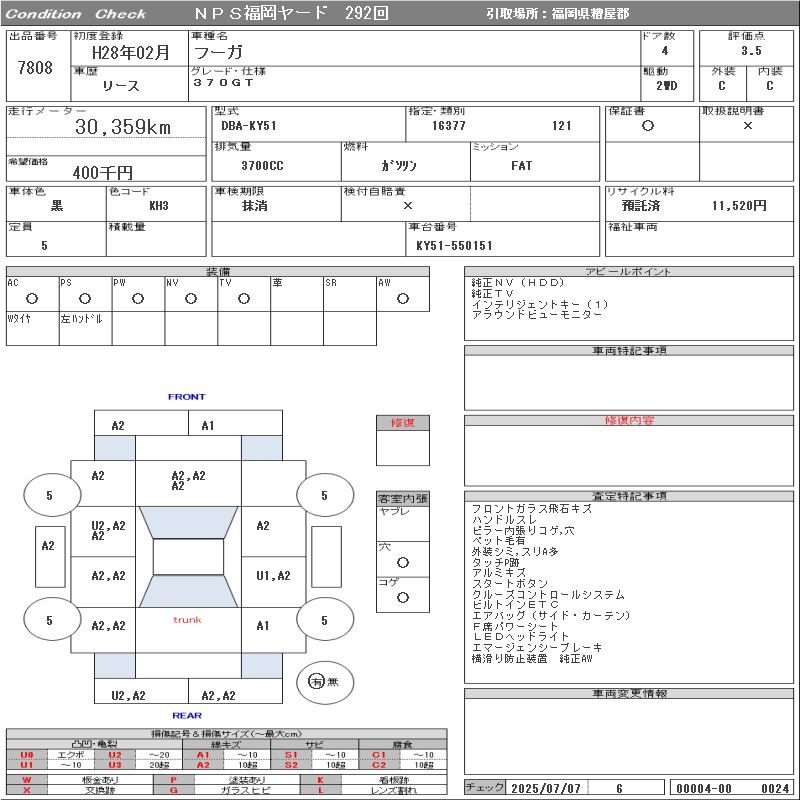 NISSAN FUGA 370GT - лот 7808
