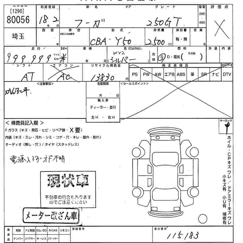 NISSAN FUGA 250GT - лот 80056